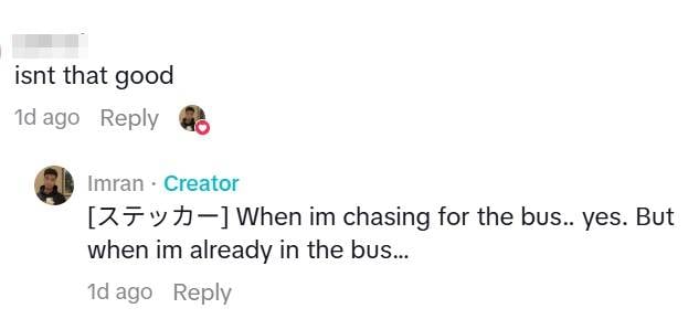 A netizen asked, “Isn’t that good?” to which the OP said that it is when he’s chasing the bus, but not when he’s already on it.
