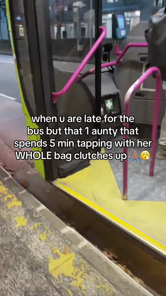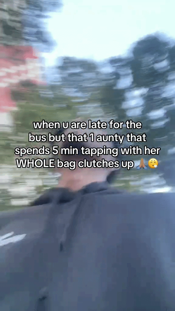 “When u are late for the bus but that one auntie that spends five minutes tapping with her WHOLE bag clutches up,” the OP wrote.
