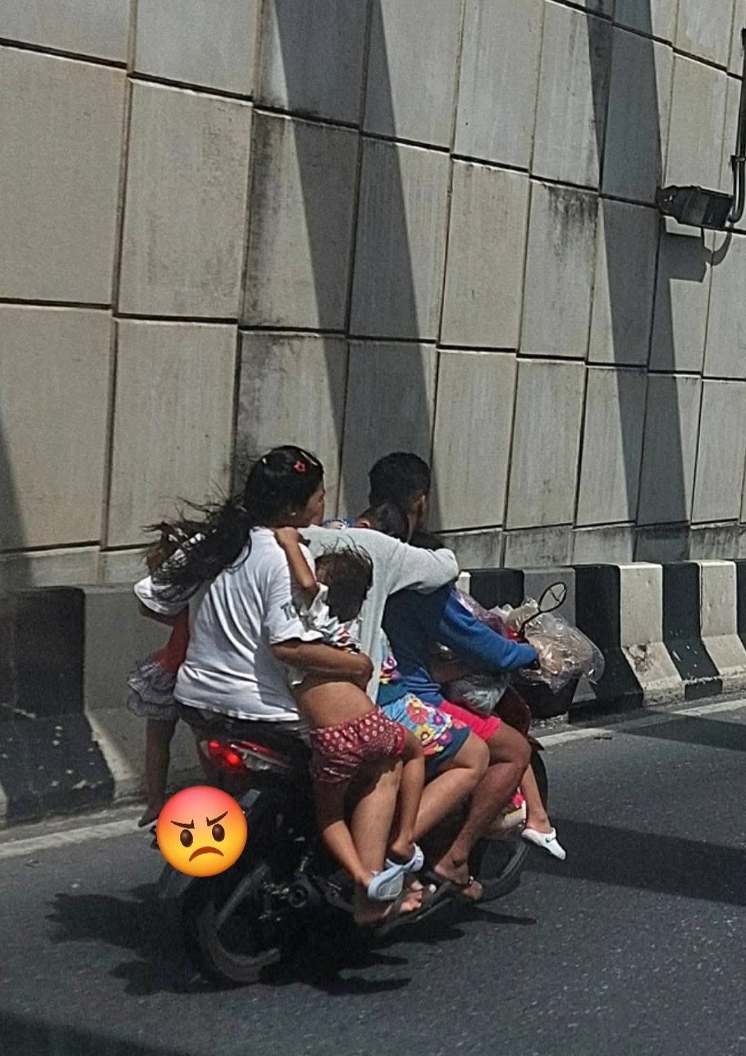 Shocking images showing a family of seven riding dangerously on a motorcycle in Thailand have elicited anger online.