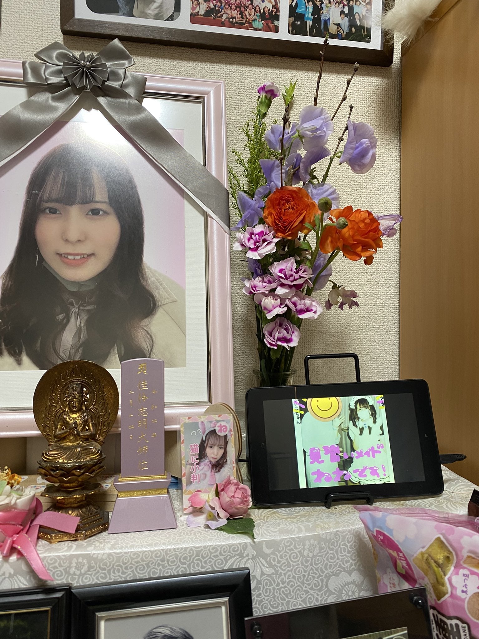 The man’s post showed a simple but homely shrine placed in front of numerous photos of the girl.