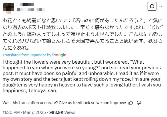 Japan netizens praise father, drawn by flowers & story of late daughter
