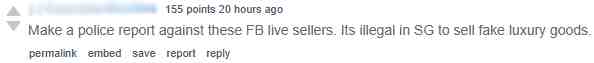 One advised making a police report, pointing out that selling counterfeit goods is illegal in Singapore.