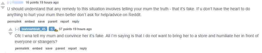 Another netizen pushed the issue, but the OP responded that they wanted to help, not humiliate their mother.