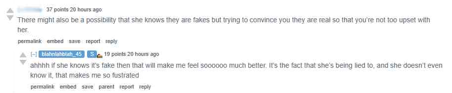 Some commenters speculated that the OP’s mother might be insisting the bags were real to spare the OP’s feelings.