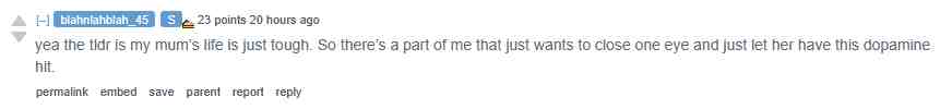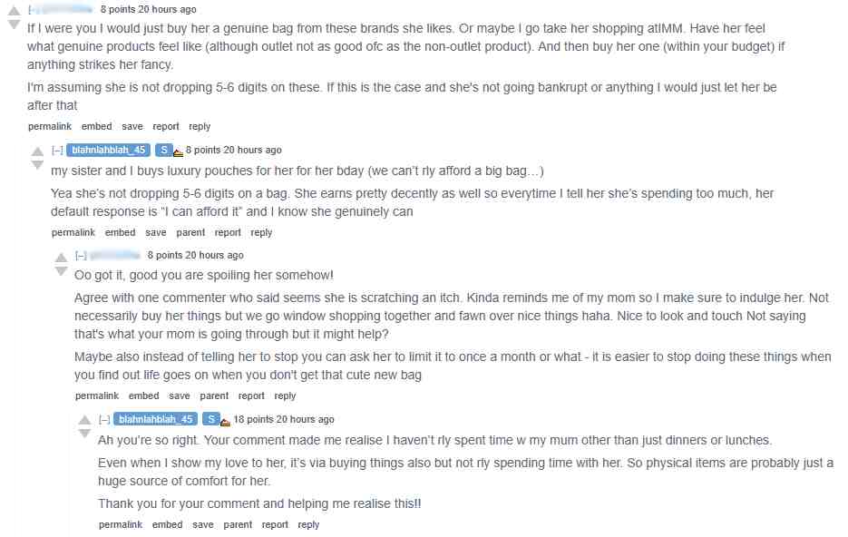 Other netizens pointed out that the mother was at least spending within her means, while the Redditor herself reflected that perhaps spending more quality time with their mum might help address the underlying issue.