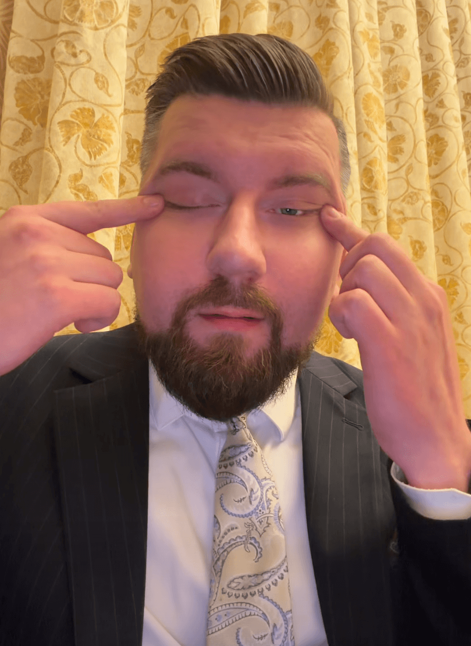 Finnish MP Juho Eerola shared an image of himself pulling the corners of his eyes and adding buck teeth, accompanied by the caption “I am Sarah” in French. As of writing, the post remains online.