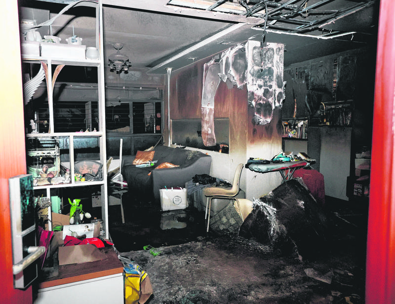 It was observed that the walls of the living room were blackened and charred.