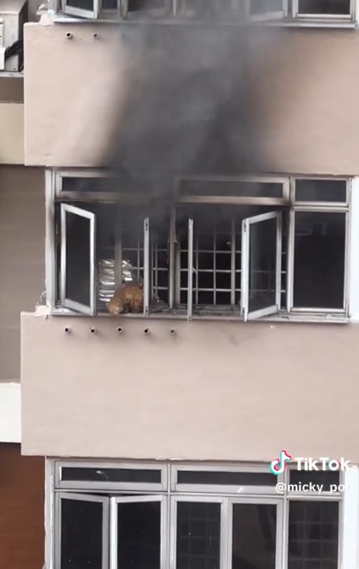 Later, a cat climbed out of the window and perched on the ledge, as if trying to escape the fire.