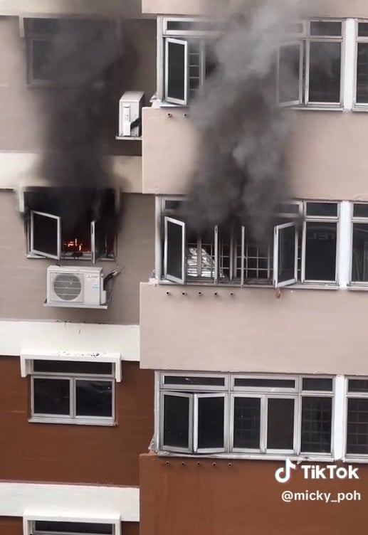 A dramatic video of the fire on TikTok showed black smoke coming from a flat on the fourth floor.