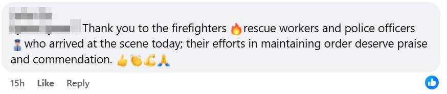 Others took the opportunity to thank the firefighters and police officers for their swift and coordinated response at the scene.