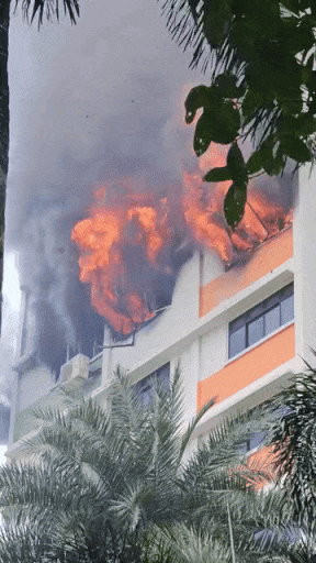Footage circulating online showed that the fire had consumed a unit on the tenth floor.