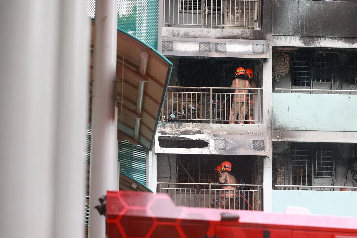 According to Shin Min Daily News, the fire erupted at around 11am from a two-bedroom unit on the second floor. Thick smoke and flames were seen billowing out of the flat as firefighters rushed to the scene.