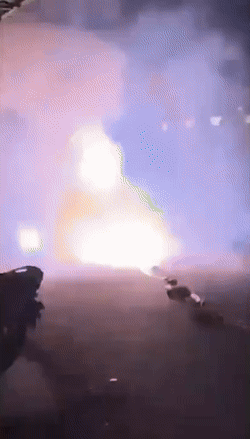 The sudden fiery explosion visibly caught spectators and passing motorists off guard as they eagerly filmed.
