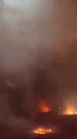A thick dark plume of smoke, resembling a mini ‘mushroom cloud’, spewed high into the air while enwreathed in flames.