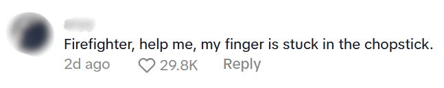 Hoping to attract a similarly good-looking rescuer, one netizen jokingly made up an emergency, saying their finger was stuck on a pair of chopsticks.