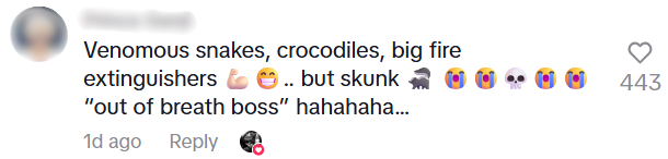One user joked that firefighters are fearless when facing venomous snakes, crocodiles, and raging infernos — but it was a skunk that finally broke them.
