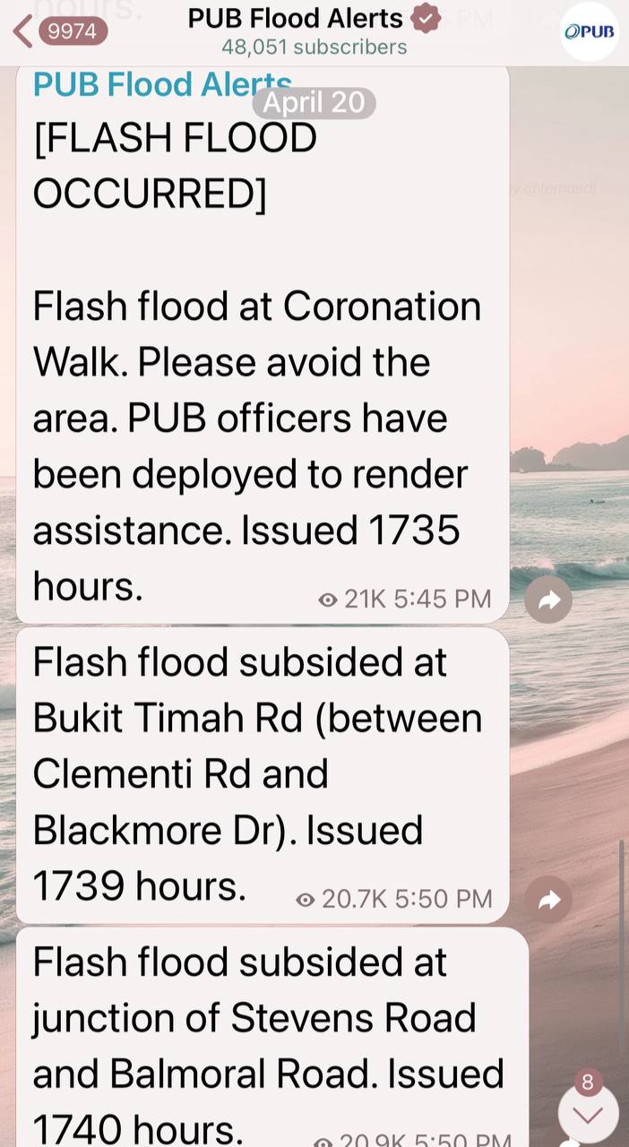 The incident followed heavy rainfall earlier that afternoon, which caused flash floods across several parts of Bukit Timah, including Bukit Timah Road and Coronation Walk.