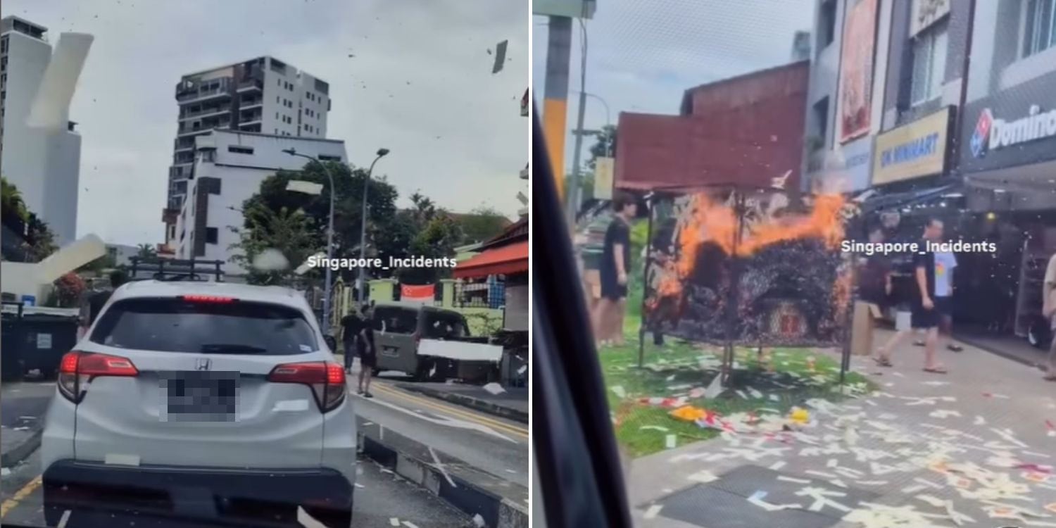 Devotees at Florence Close, Kovan were recently burning joss paper when the offerings and ashes drifted into the air, flying onto the nearby road like “snowflakes”.