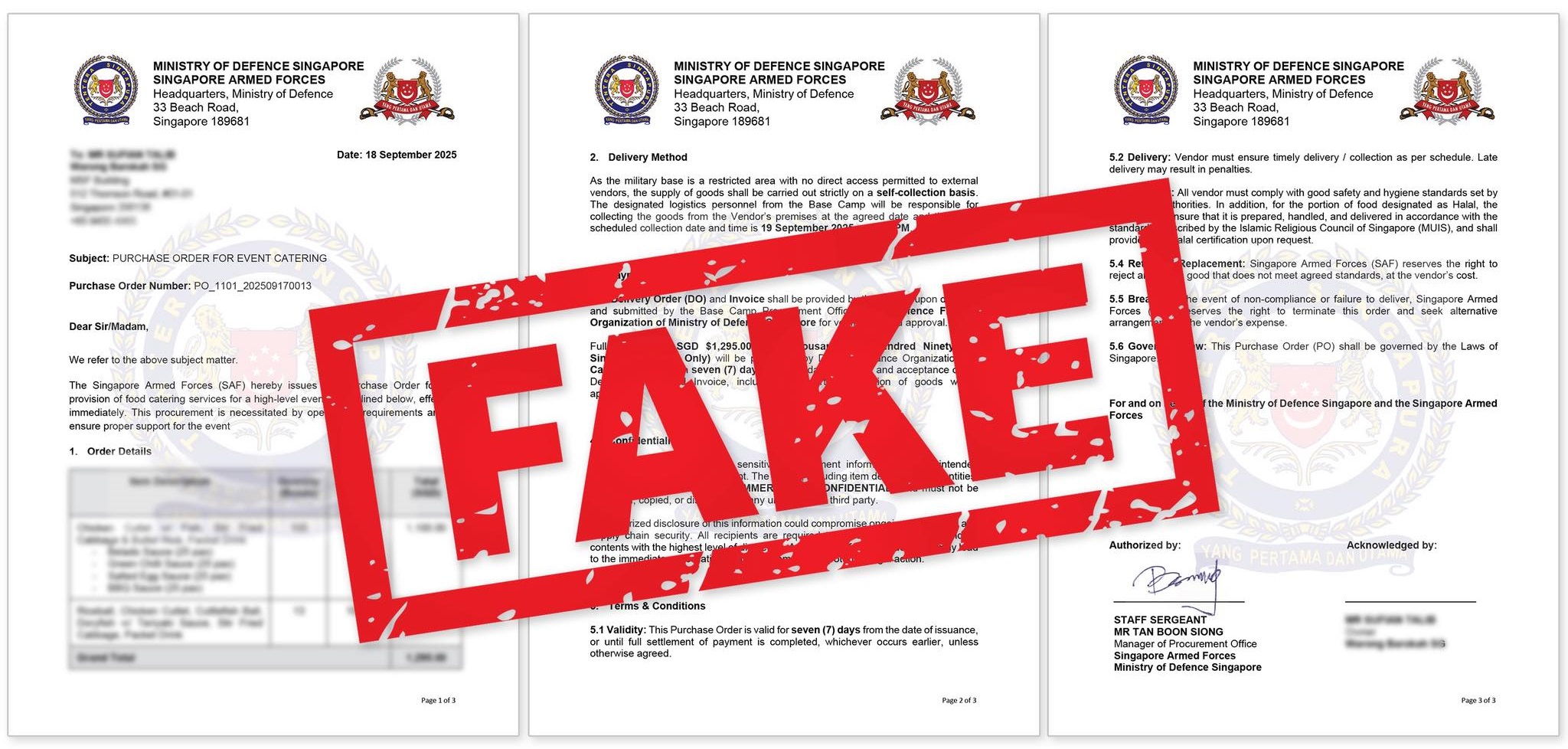 3 new cases of suspected fraudulent bulk orders by ‘MINDEF/SAF personnel’, fake purchase orders used