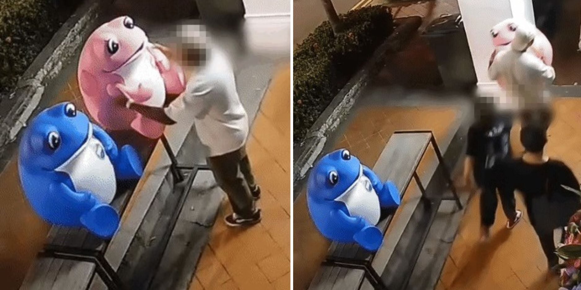 Pink frog statue was taken from outside Korean restaurant by man who walked past
