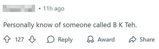 Another shared that they knew someone named “B K Teh”, which naturally brought to mind the beloved local dish, bak kut teh.