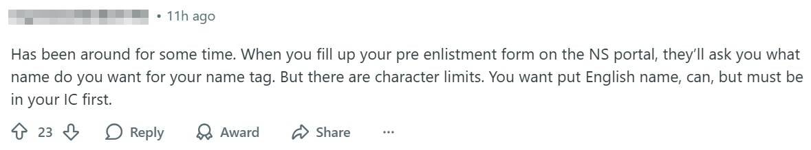 In a post in the r/askSingapore subreddit on 5 April, a Redditor wondered if SAF soldiers can now choose what appears on their name tags.