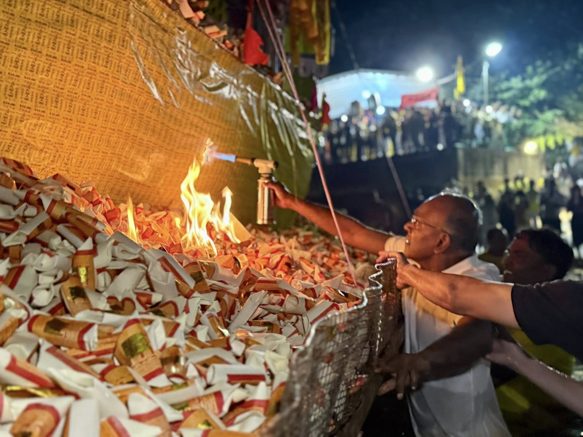At about 10.15pm, fireworks lit up the sky as devotees prayed for blessings.