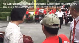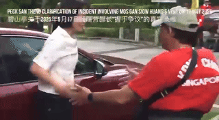 However, Mr Leong, who wore a red T-shirt in the video, explained that she had been met by a big group after getting out of her car that day and did not notice him at first.