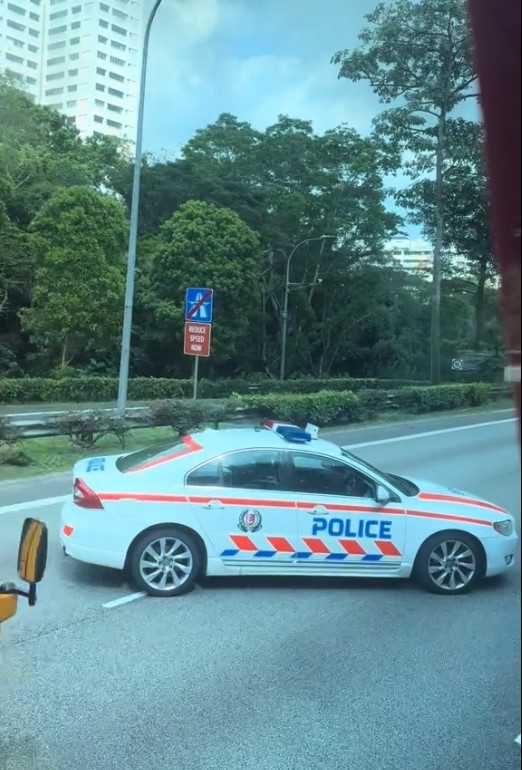 A police car, Land Transport Authority (LTA) traffic marshal’s motorcycle and Expressway Monitory & Advisory System (EMAS) Recovery vehicle were also at the scene.