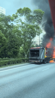 A garbage truck caught fire along the Bukit Timah Expressway (BKE), causing congestion as two lanes had to be blocked.