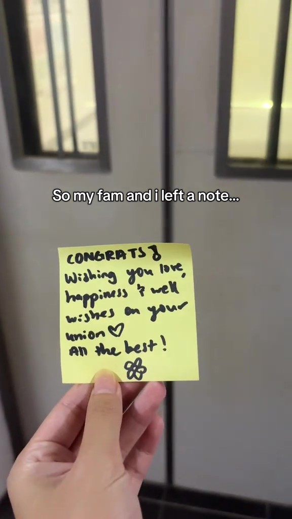 However, rather than bashing the newlyweds, residents instead put up heartwarming congratulatory messages for the couple.