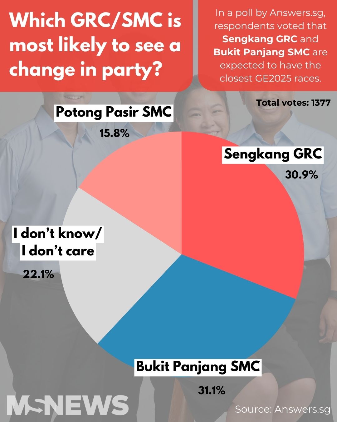 In a poll on Answers.sg, 1,377 respondents picked a GRC or SMC they felt was most at risk of seeing a change in party.