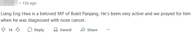 An alleged resident assessed Mr Liang as a “beloved MP” who had been very active in Bukit Panjang.