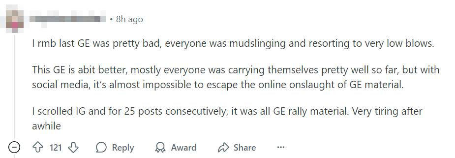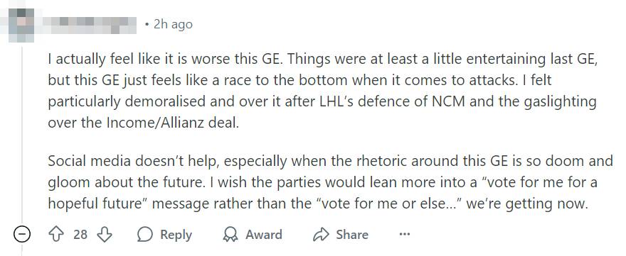 However, others disagreed. One commenter sympathised with the OP and felt that GE2025 felt “worse” than ever, describing it as a “race to the bottom” when it came to political attacks.