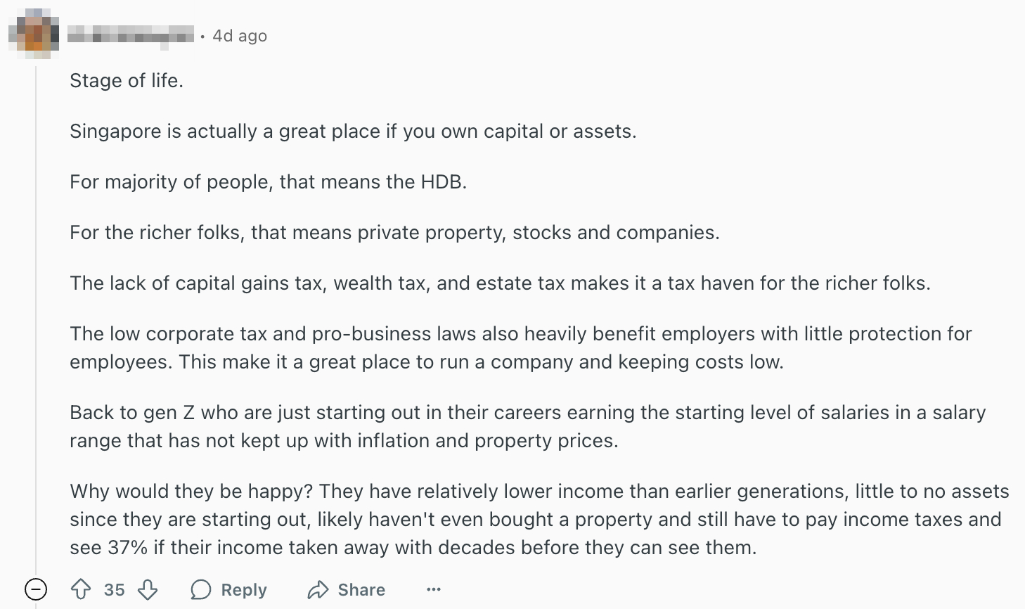 Many weighed in on the OP’s question, with one commenter suggesting that Gen Zs are on the “receiving end of S$600K BTOs” and a “rapidly increasing cost of living”.