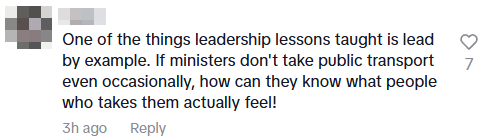 Another user quoted the saying “lead by example”, adding that even ministers should take public transport from time to time — just like most people do — to better understand the experience.