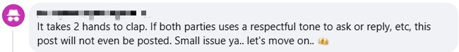 The majority of those who commented on Ms Chua’s post supported her, agreeing that the man had displayed entitled behaviour.
