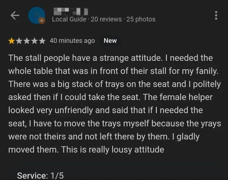Man bemoans ‘lousy attitude’ of Ghim Moh stall in review