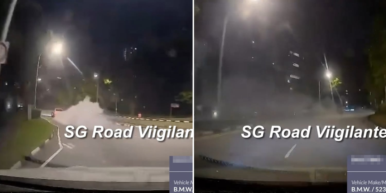 Recently in Balestier, dashcam footage captured an unusual sight on the road at night: a BMW that appeared to vanish after leaving a huge cloud of smoke behind.
