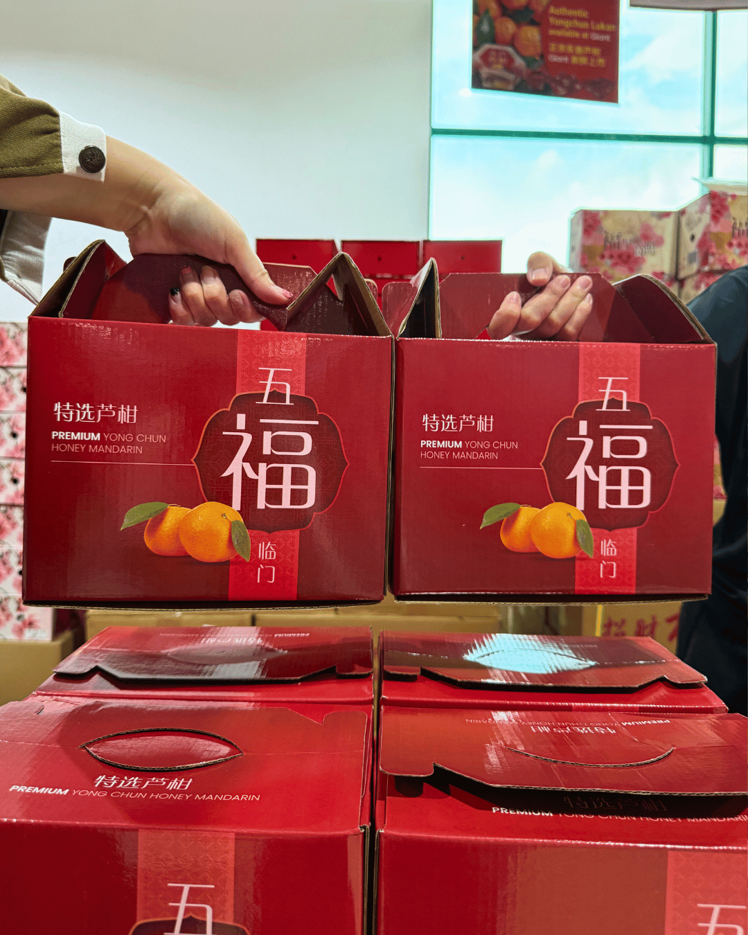 Mandarin oranges remain a classic choice that never goes out of style, thanks to their symbolism of prosperity. At Giant, you can choose from China Papa Mandarin Oranges (S$15.60 for two 2kg boxes, U.P. S$33.80) or the China Yong Chun Lukan Gift Pack (S$13.90 for two boxes of 18 pieces, U.P. S$25.20).