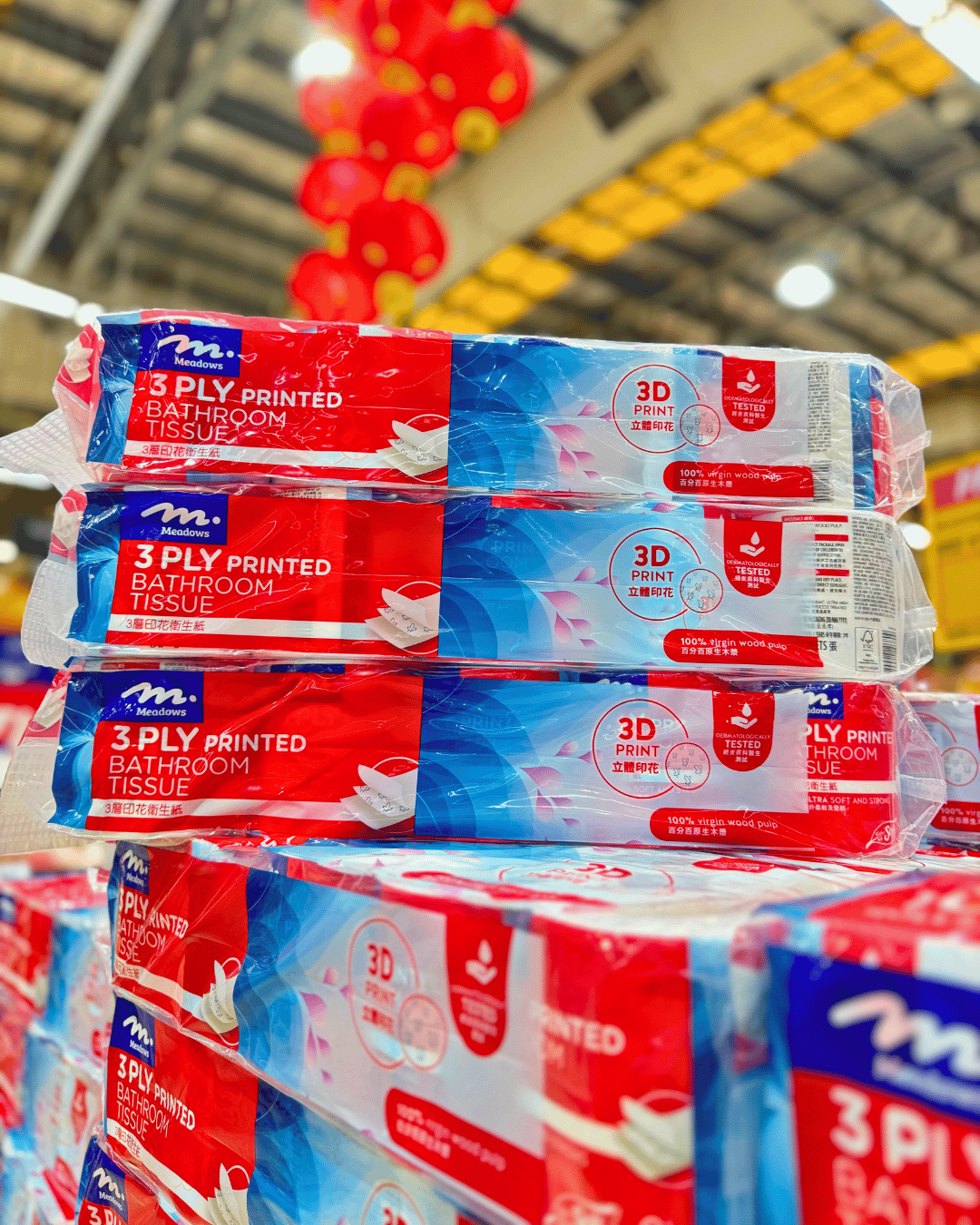 And because guests coming and going is part of the season, it never hurts to be prepared with practical essentials like Meadows 3-Ply Printed Toilet Paper (S$10.50 for three packs of 10 rolls, U.P. S$20.40), one of those things you don’t think about until you really need it.