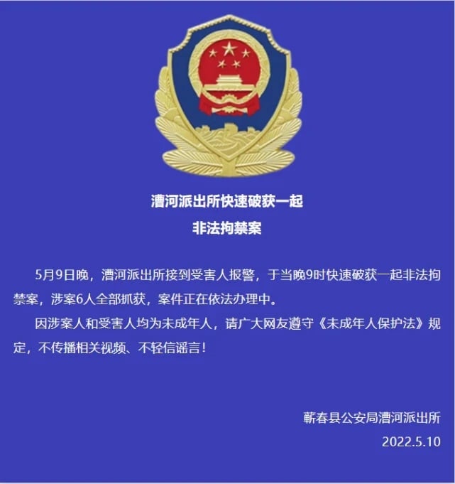 According to a notice from the Qichun County police shared by the media, a police report was made over the incident on 9 May 2022.