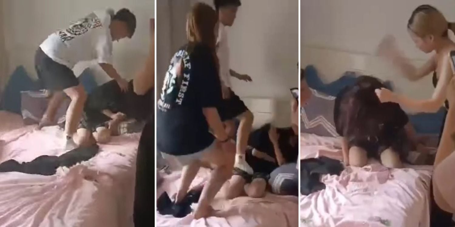 Despite the apology and kowtowing, the group keeps up their punches and kicks, with the boy and the other girl thrashing her forcefully as the clip ends.