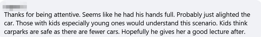 “Seems like he had his hands full. Probably just alighted the car. Those with kids, especially young ones, would understand this scenario,” the user wrote.