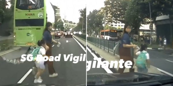 Car nearly hits young girl & guardian who jaywalked in Taman Jurong
