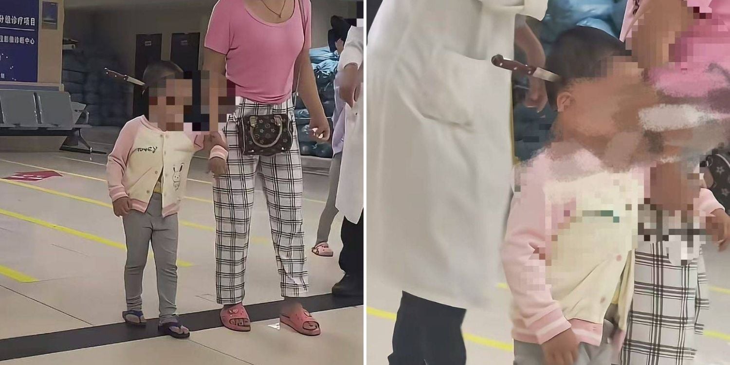 Patients and staff were left shocked when a three-year-old girl calmly walked into a hospital in Yunnan, China with a fruit knife embedded in her head on Friday (15 Aug).