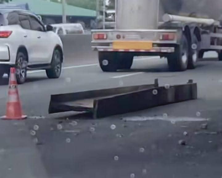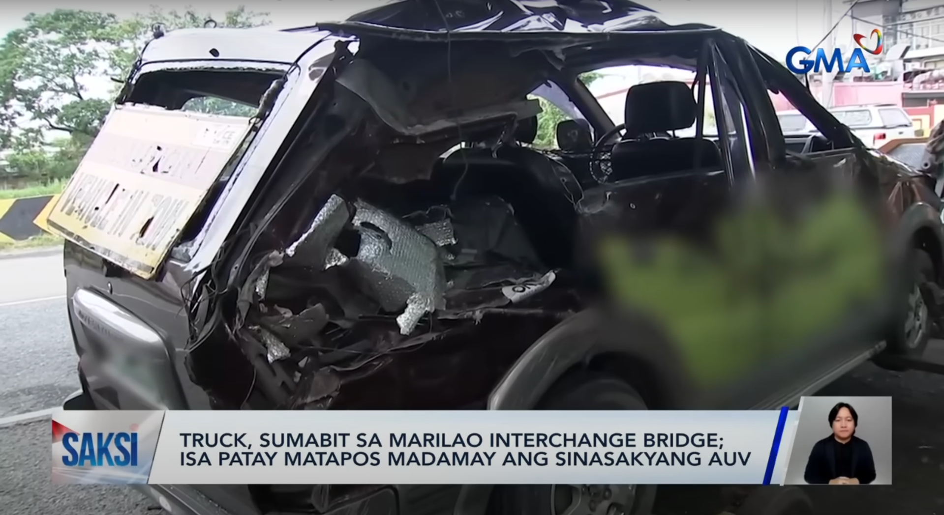 According to ABS-CBN, an 18-wheeler truck hit the bottom of an overhead bridge, causing the bridge’s girder to fall and hit the front of a car travelling beside the truck.