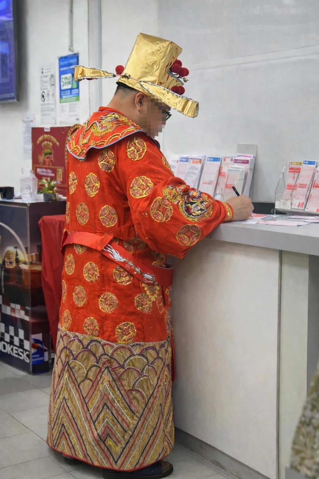 A man dressed as the Chinese God of Wealth was recently spotted purchasing lottery tickets at a Singapore Pools outlet, just a day before a S$12 million draw.