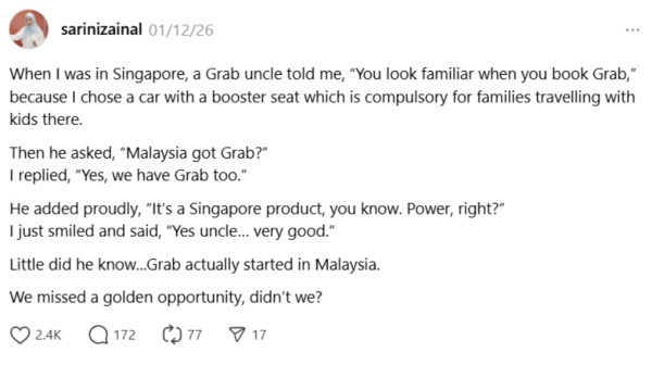 Many pointed out that Grab started in Malaysia and was founded by Malaysian-born businesspeople before relocating its headquarters to Singapore for further growth.