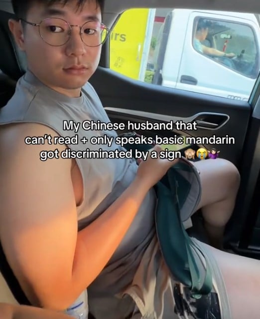 Ally thus said that her husband, who can’t read Chinese and speaks only basic Mandarin, “got discriminated” by a sign.